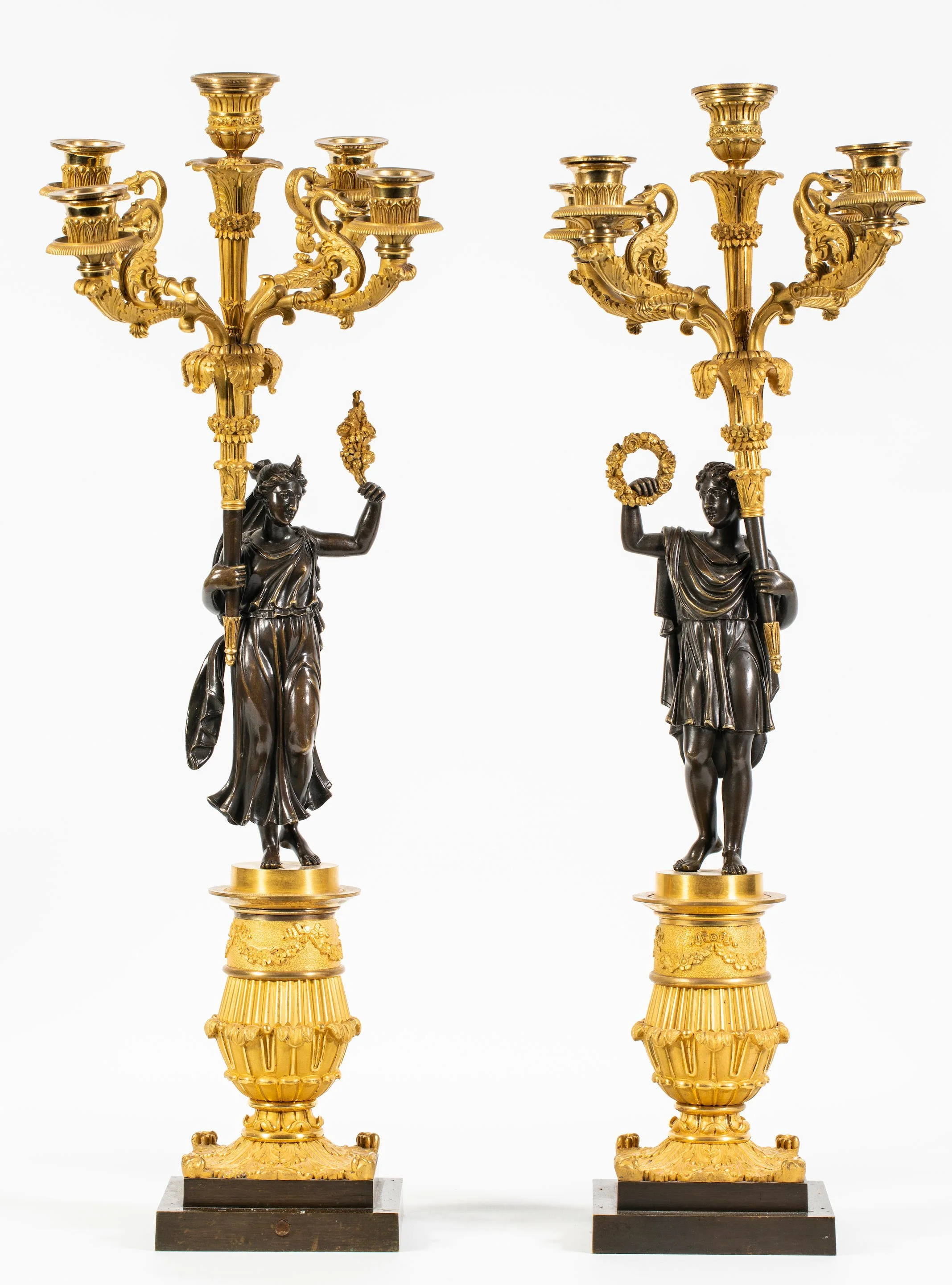 - A pair of Restoration patinated and gilt-bronze candelabra. Sold for £16,313 (estimate £4,000-6,000)